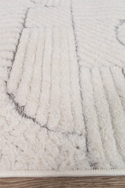 The Scarlet Silver runner melds modern minimalism with textured depth. Set on a soft ivory background, it features geometric patchwork designs of stripes, chevrons, and curves rendered in a subtle silver-grey hue. The raised details add a gentle three-dimensional effect, providing depth and interest while preserving a serene, neutral palette. Its understated versatility makes it a perfect fit for Scandinavian, modern, or minimalist decor. Made from durable polypropylene yarn with a plush pile, this runner delivers softness underfoot and effortless maintenance, ideal for everyday use. A sophisticated piece that harmonizes contemporary style with lasting comfort.