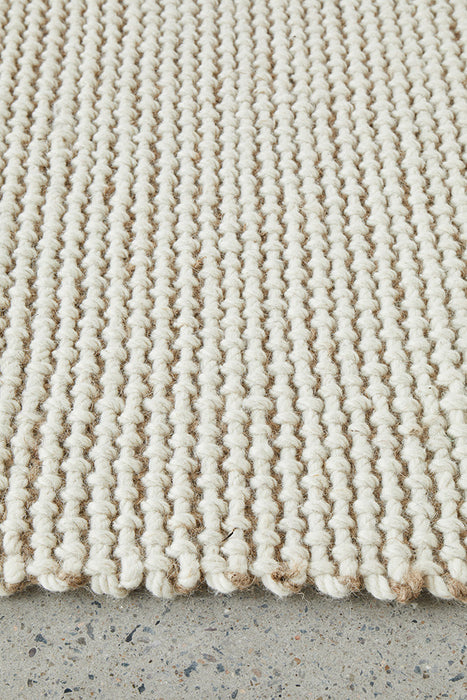 Transform your space with the harmattan Cove Cream rug, a contemporary piece that exudes modern elegance. Featuring a natural colour and a stunning hand-knotted cream pattern on top, this rug adds a touch of sophistication to any room. The beautifully textured weave, crafted with a blend of wool and jute materials, creates a soft and durable design with a luxurious high texture. Immerse yourself in the exquisite craftsmanship and elevate your decor with the timeless beauty of the harmattan Cove Cream rug. This rug is an ideal selection for modern coastal homes, infusing your space with a cosy and welcoming atmosphere.