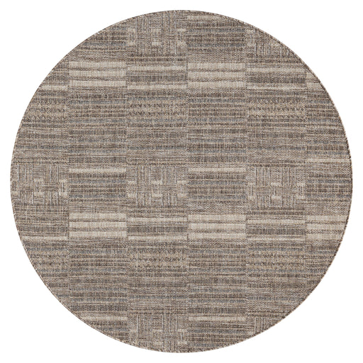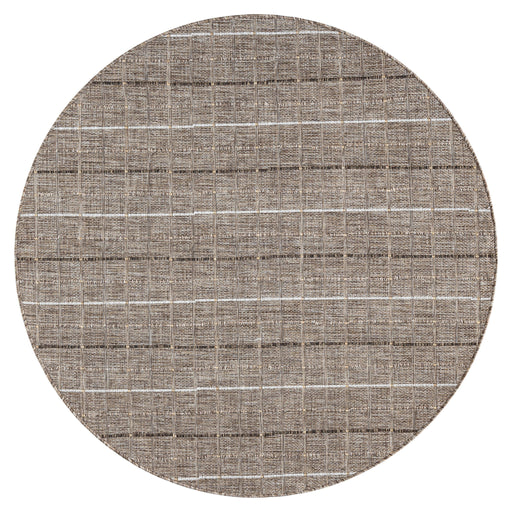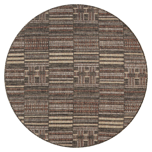 The Paseo Stroll Earth Round Rug represents advanced textile engineering with its flat-weave construction and refined earth-tone palette, manufact...