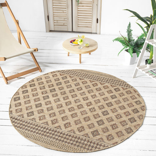 The Paseo Jaunt Natural Round Rug presents a sophisticated flat-weave design with understated tones for maximum adaptability, crafted via power-lo...
