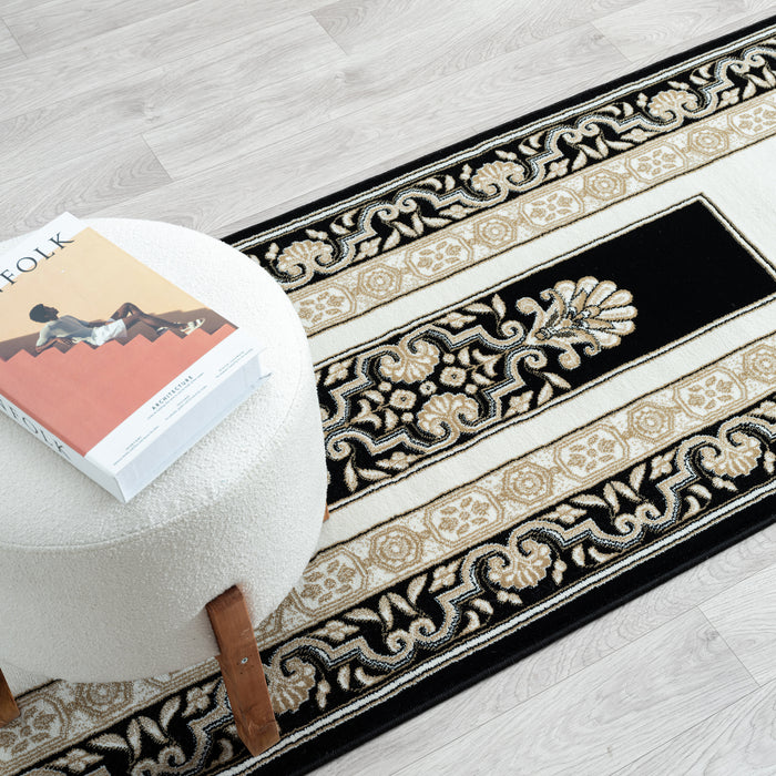 Royal King Black Cream Runner Rug