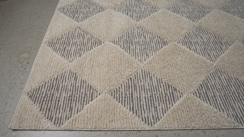 With a contemporary and sophisticated appeal, the Serenade Yuri rug embodies modern elegance. Its soft pile, in a harmonious blend of beige and latte colours, adds warmth and versatility to any neutral decor. The rug features a captivating diamond checker pattern, crafted through a unique textured effect achieved by the high-low pile construction. The beige high pile and latte low pile create a visually striking contrast, enhancing the depth and dimension of the design. Elevate your living space with the timeless beauty and plush comfort of this rug, adding a touch of modern charm and sophistication to your home.