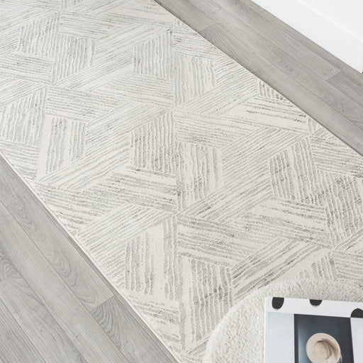 Crafted from a luxurious blend of heat-set viscose, polyester, and cotton, the Portise Cortland Light Grey Rug provides unparalleled comfort and el...