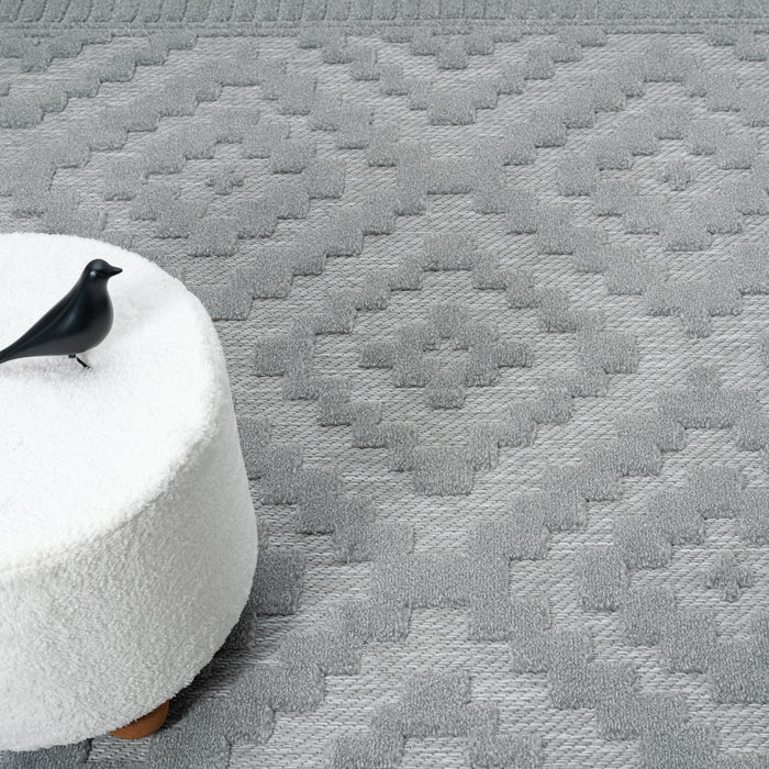 This tranquil Calm collection contains rugs with a multi-texture pile and geometric patterns, repeated in muted tones to create restful spaces in your home. The sculpted pile is power loomed from polypropylene, using a high-and-low weave method, and contains shed-resistant and anti-static properties. This highly versatile collection also has quality finishes including all-side binding. also contains shed-resistant and anti-static properties and is easy to maintain.