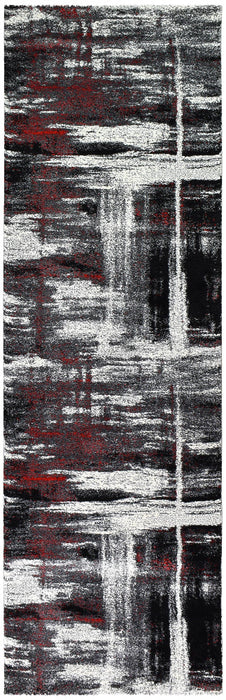 Pompon Crest Light Grey Red Runner Rug