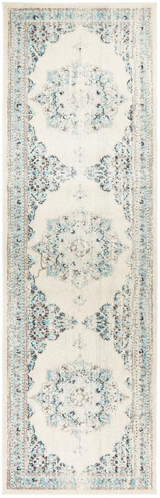 This delicate piece of art from Rhythmic collection brings forward a sophisticated pile featuring an intricate intertwining medallion pattern in blue major strokes laid on an off white context. It has this remarkable appeal adding a striking element to your neutral decor at home. Each striking rug is made from premium materials and fiber for guaranteed strength and resilience to protect against stains, soils and as well as internal pollutants.