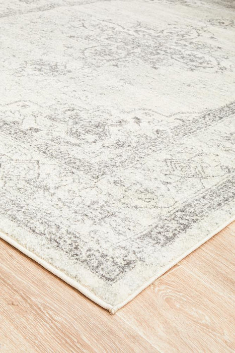 The Rhythmic Silver rug used the ingenious technology from Turkey and utilizing quality polypropylene materials to give a premium authentic finish. It features interloping figure scheming surrounds, faded patterning across a stellar center figure on off white silverish tone. These rugs guarantee a mesmerizing focal point in your household with an impeccable array of style, culture and durability rolled into one.