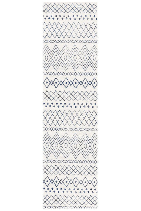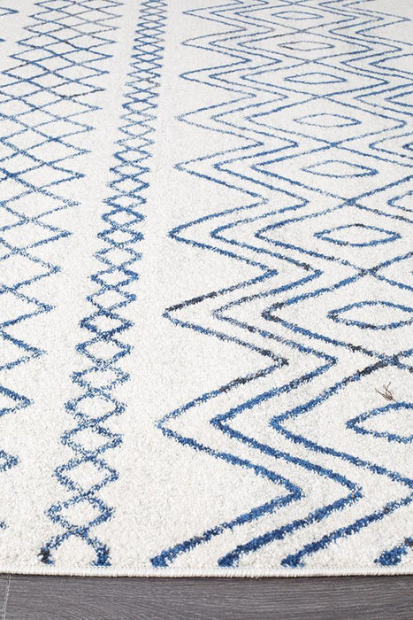 Gynama White Blue Rustic Tribal Rug