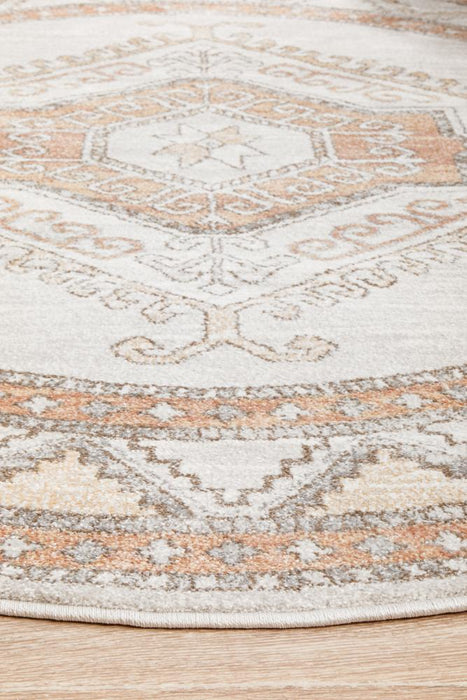The softest hues flow through this gorgeous Aztec design. Different shades of warm peach pop out of the cool grey background. Power loomed with a polypropylene pile, this rug is non-shed and easy care. These rugs offer style, versatility and are available in rectangles, rounds, and runners in a large variety of sizes.